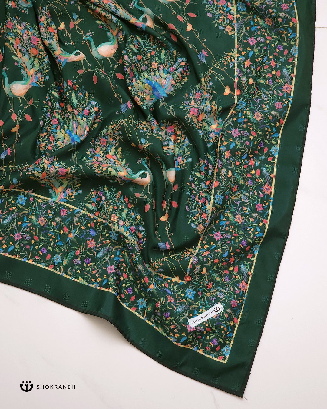 ✔روسری طاووس از جنس نخی فلامنت درجه یک با قواره 135، بدون دیدو بسیار با دوام میباشد.