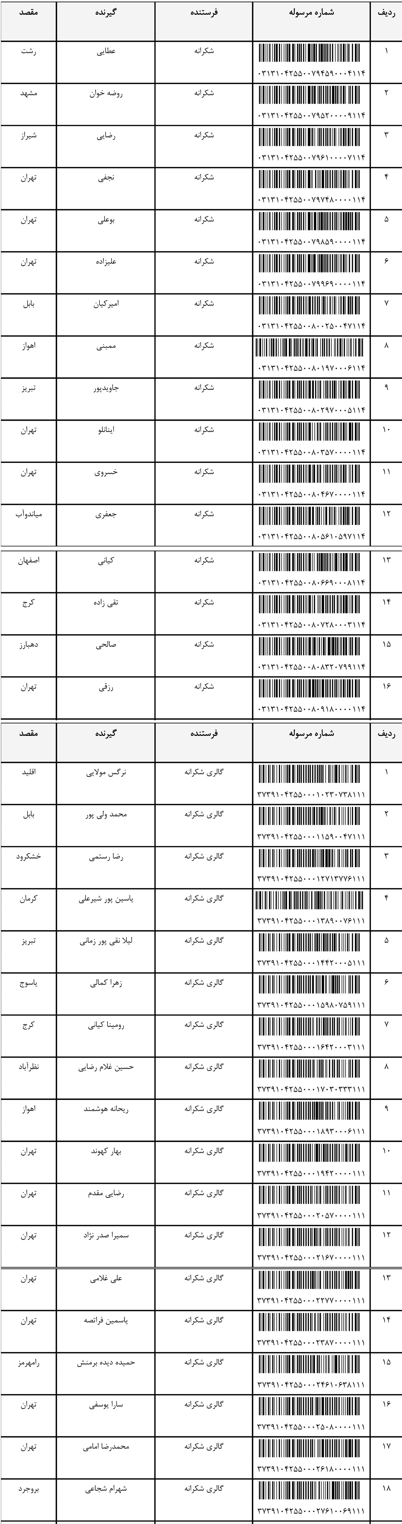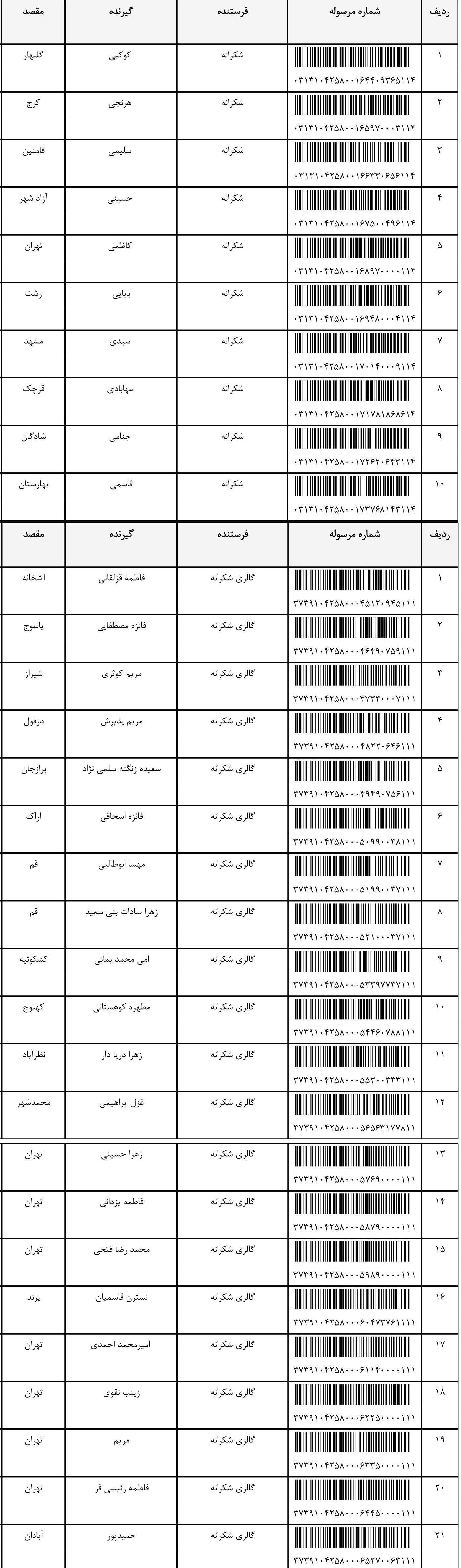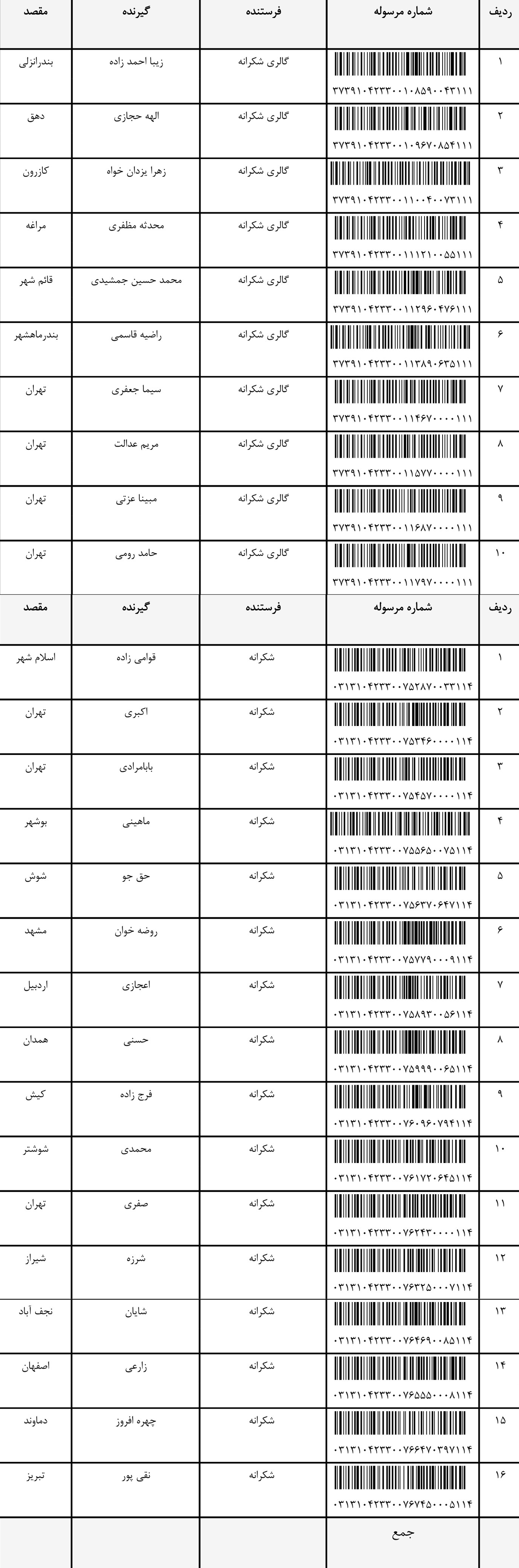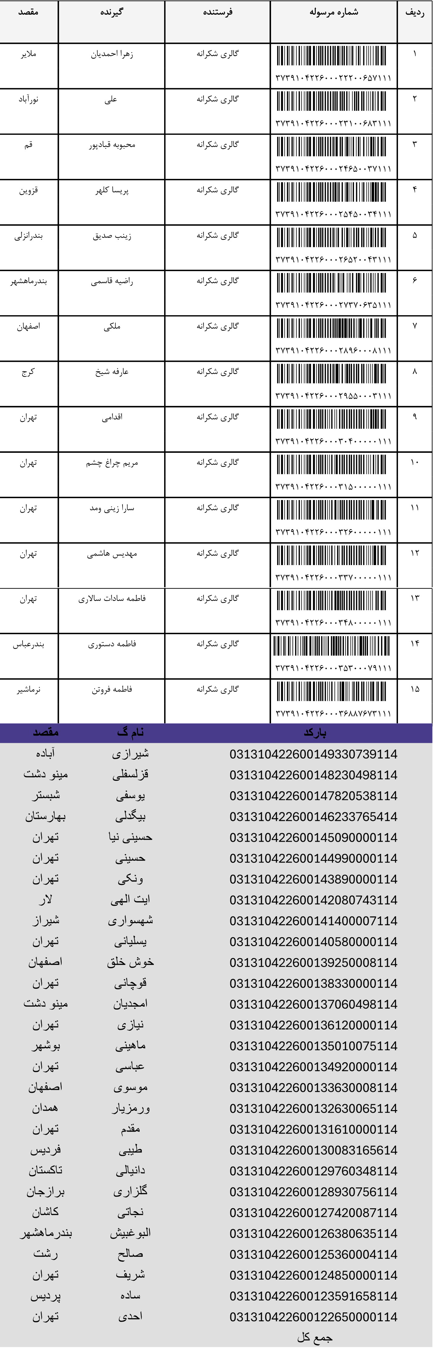 شما برای اطلاع از وضعیت سفارش خود میتوانید کد مرسوله خود را در سامانه رهگیری پست به نشانی https://tracking.post.ir وارد کنید واز وضعیت بسته خود مطلع شوید.